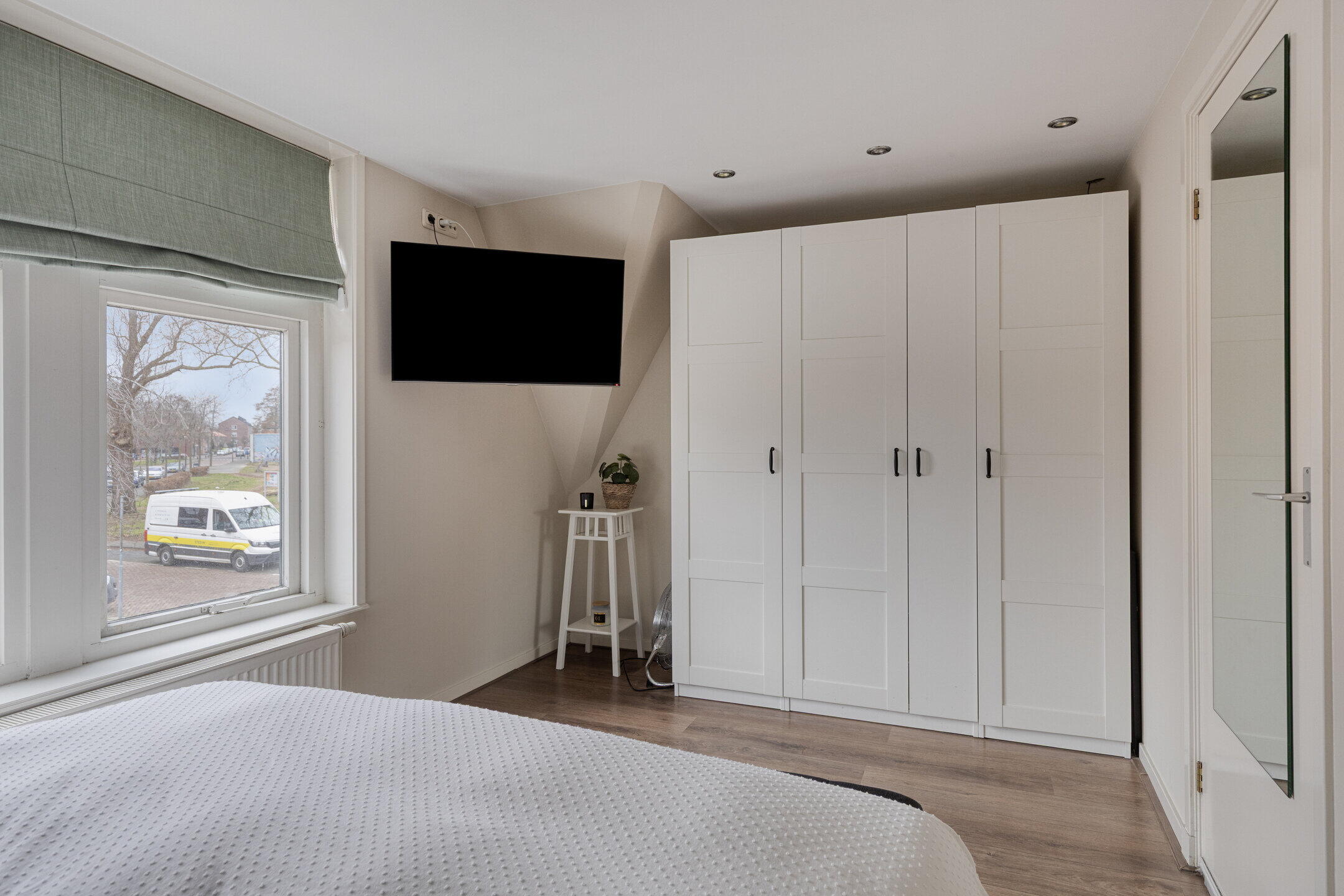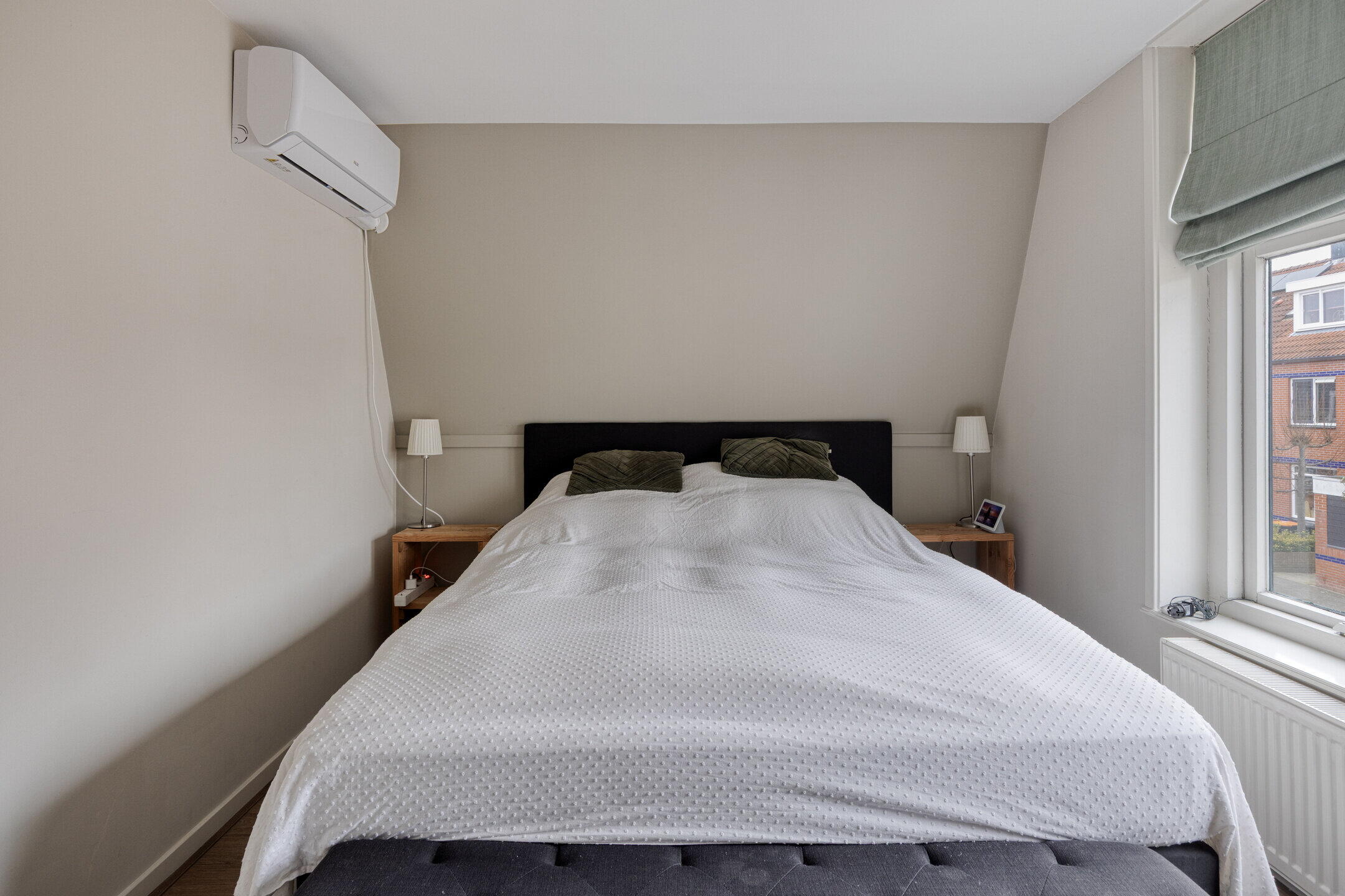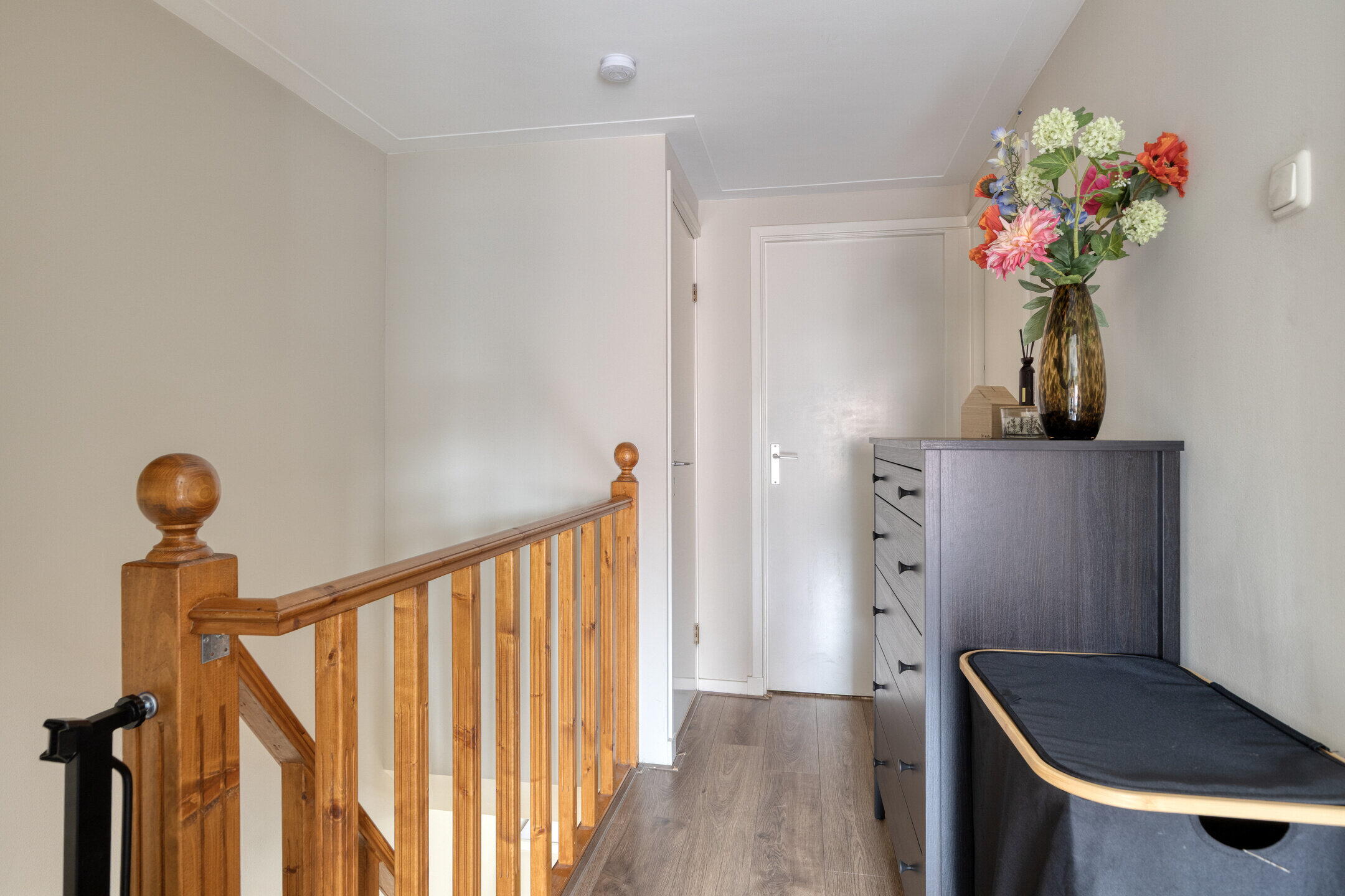 Overloop met toegang tot drie slaapkamers. De badkamer is voorzien van douche, toilet, wastafel en wasmachineaansluiting. Tevens is er een vaste kast aanwezig. De hoofdslaapkamer is voorzien van een airconditioning.